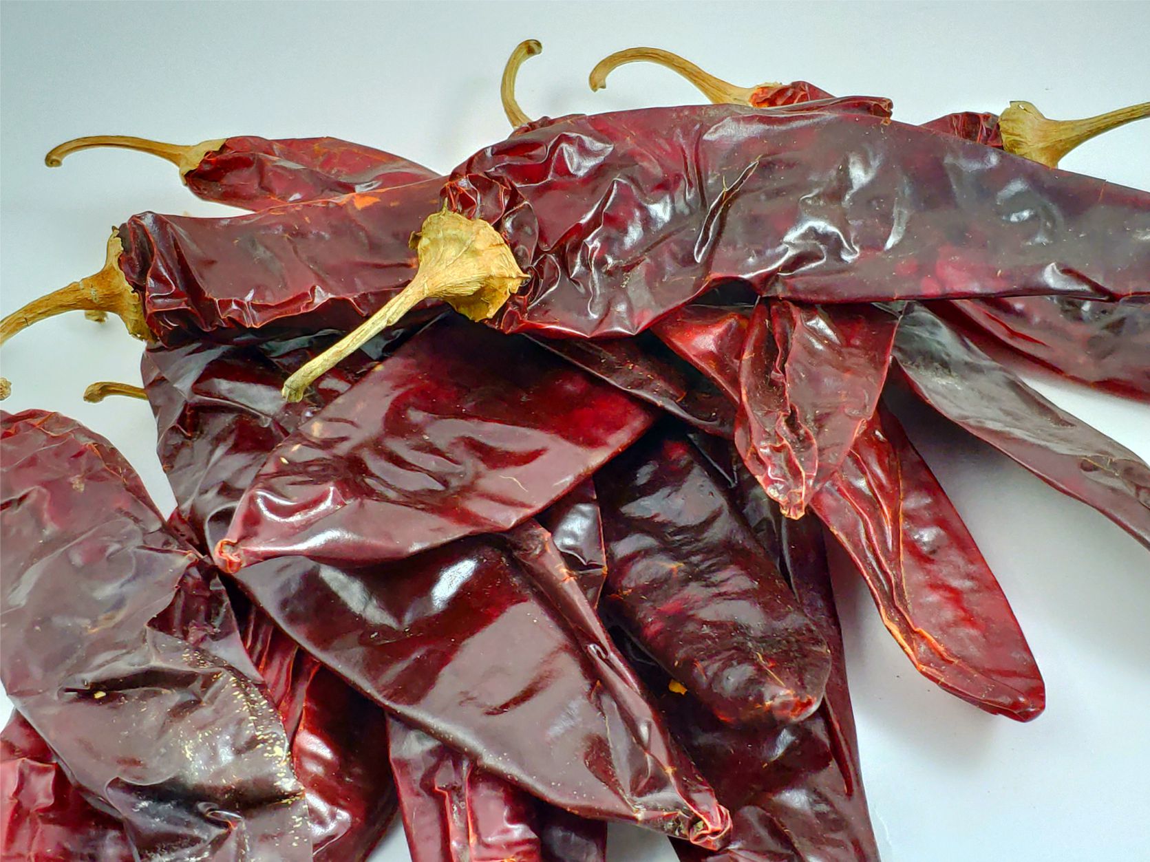 El chile de Pasilla obtenido del fruto de la planta cultivada Capsicum annum perteneciente a la familia de las Solanáceas Es un fruto largo de cuerpo ondulado que termina en un ápice puntiagudo o chato; presenta de dos a tres lóculos de color café obscuro con tones verdes